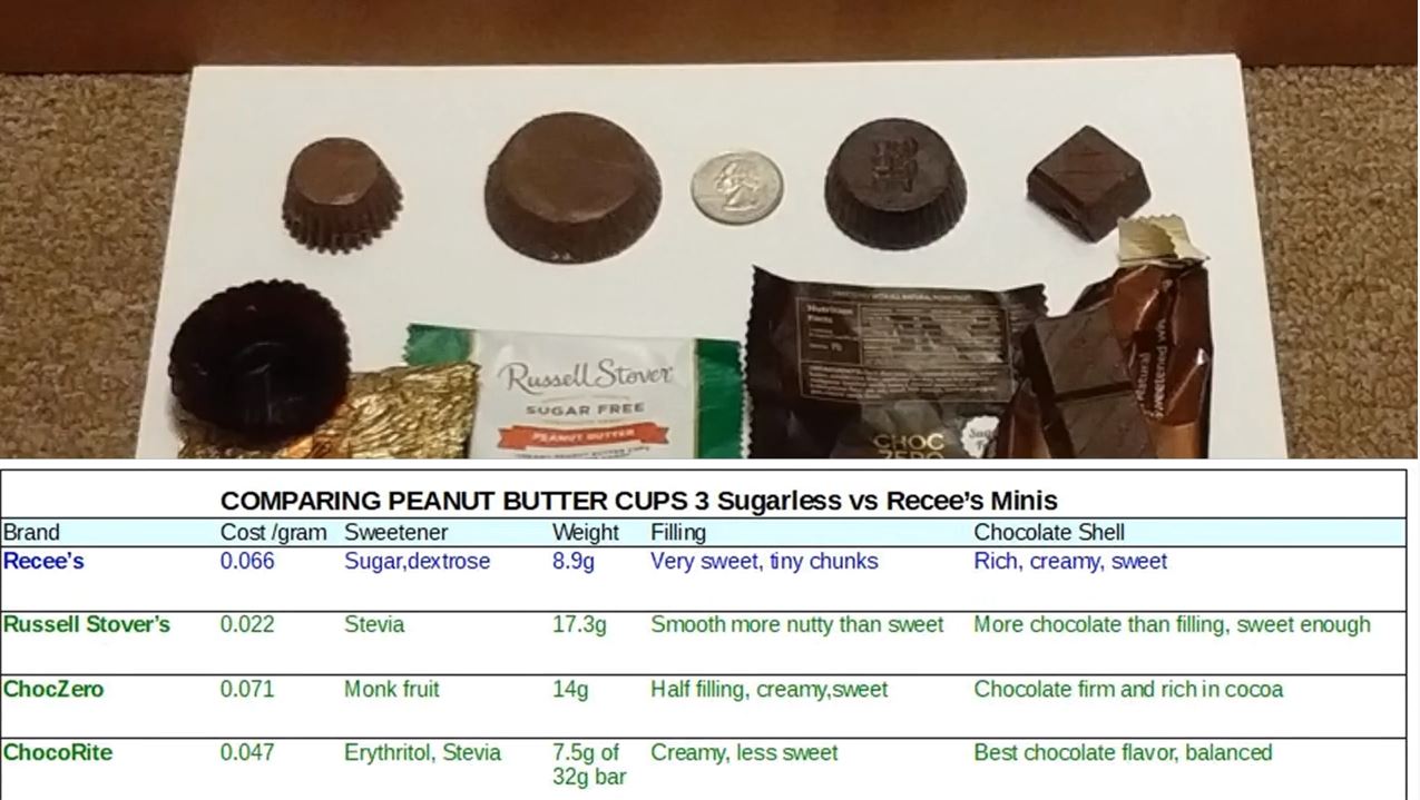 This is the chocolate and peanut butter sugarless shootout. A comparison of taste and value for sugarless peanut butter cups.
